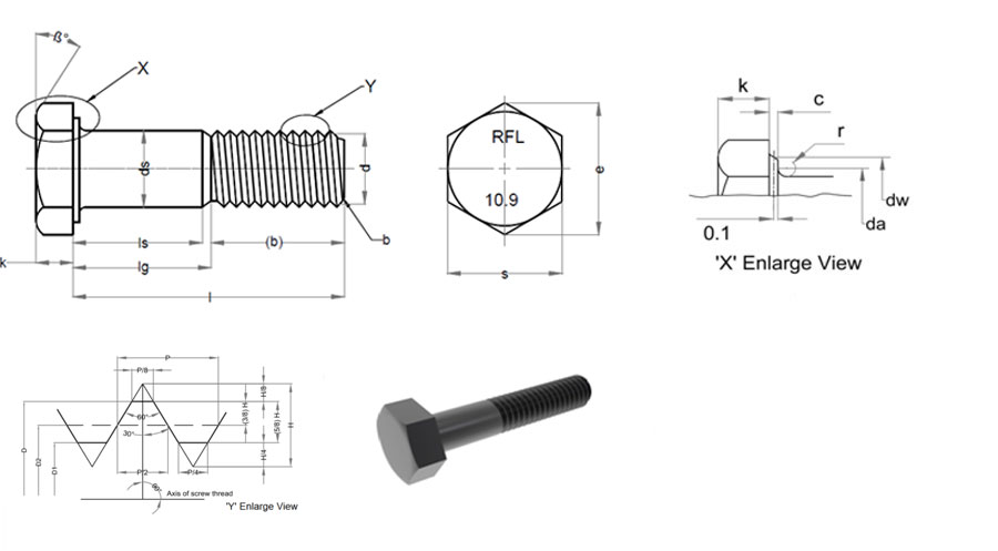 Dimensional standard as per DIN 931